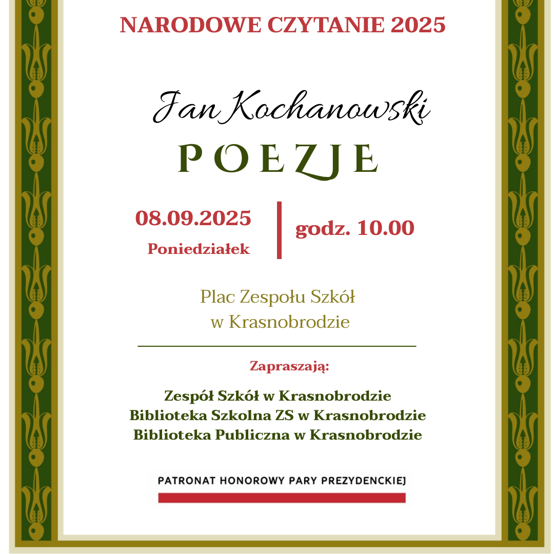 Zapraszamy do wspólnego czytania i refleksji nad ponadczasowym dorobkiem tego mistrza słowa. W tym roku spotykamy się na szkolnym placu Zespołu Szkół w Krasnobrodzie, w poniedziałek 8 września o godz. 10.00