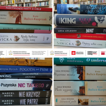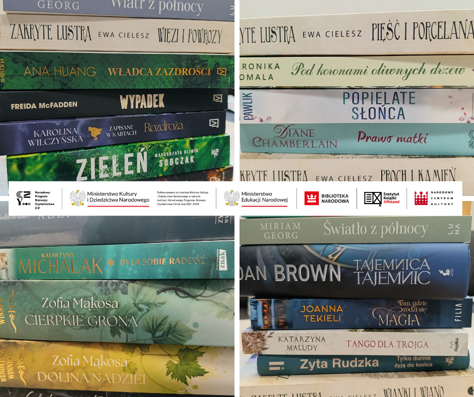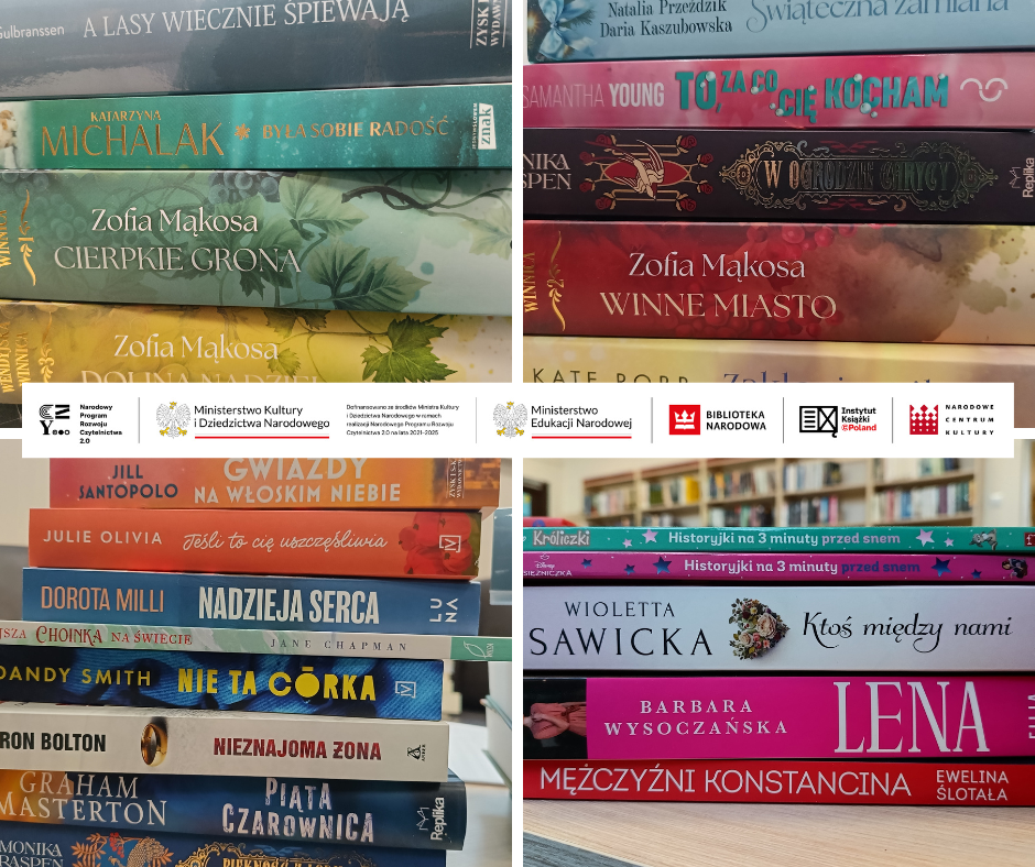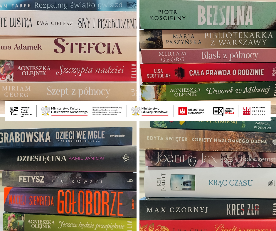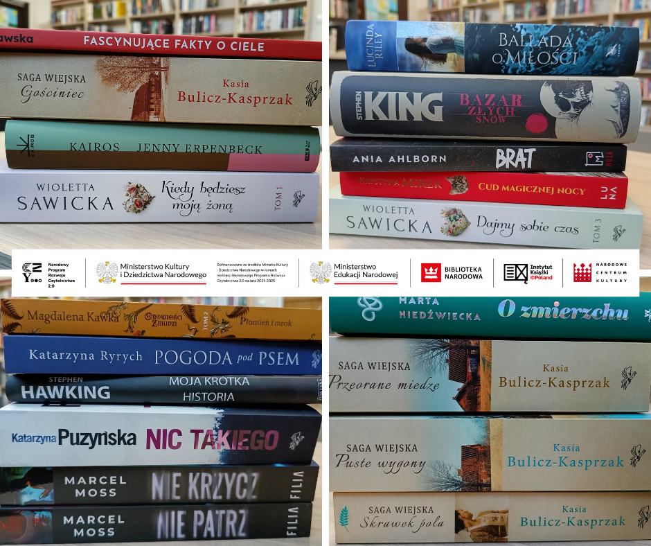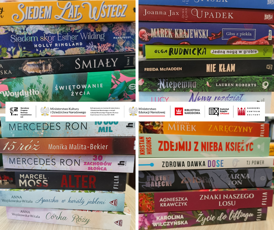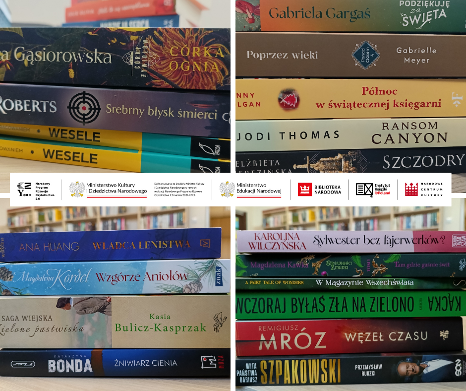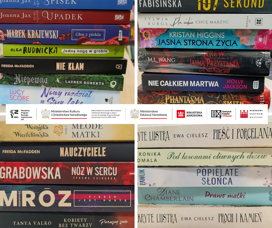 Nowości zakupiono w ramach „Dofinansowania dla bibliotek publicznych na zakup nowości wydawniczych oraz usługi zdalnego dostępu do książek w formatach e-booków i/lub audiobooków i/lub synchrobooków – Priorytet 1, Kierunek interwencji 1.1. w ramach NPRCz 2.0”