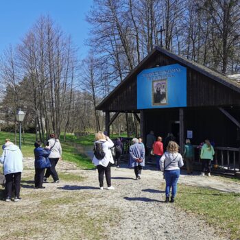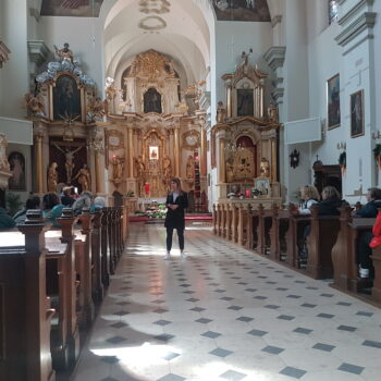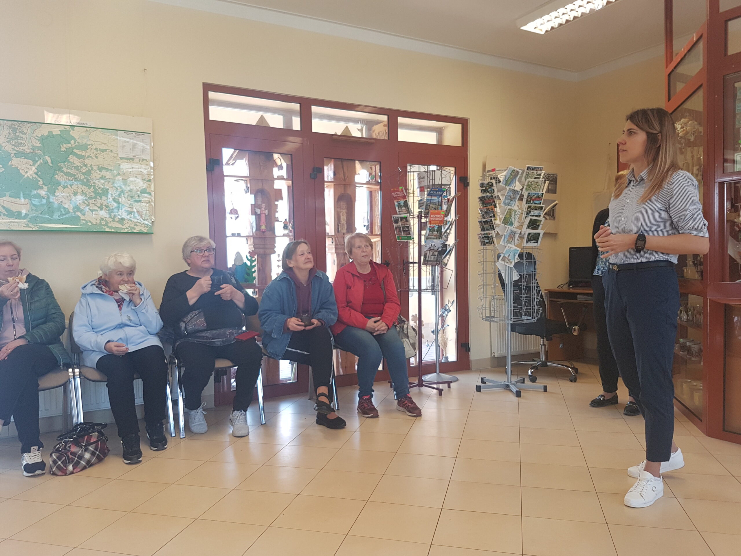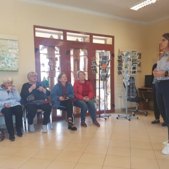 Przywitaliśmy ich skromnym poczęstunkiem w Informacji Turystycznej, która działa w strukturach naszej biblioteki. Centralnym punktem tego spotkania była postać Pana Romana i miejsca z Nim związane ale nie mogliśmy też nie pokazać choćby małego fragmentu z długiej listy miejsc w Krasnobrodzie, które „trzeba zobaczyć”. Trud przewodnictwa wzięła na siebie nasza koleżanka, pracownik Informacji Turystycznej a z zamiłowania przewodnik i pilot wycieczek Katarzyna Lipska.