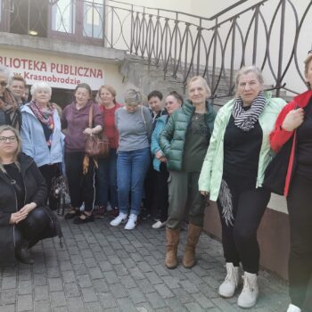 Nasza przewodniczka w wielkim pośpiechu pokazała im zalew, Sanatorium Rehabilitacyjne oraz Dom Pomocy Społecznej. Tam właśnie, ostatnie lata życia, spędził bohater tej wizyty. Nasi goście z niekłamanym zachwytem podziwiali Krasnobród. Niektórzy postanowili że koniecznie muszą tu wrócić na letni odpoczynek bądź skorzystać z oferty krasnobrodzkiego sanatorium. Nasze spotkanie skończyliśmy w Bibliotece Publicznej w Krasnobrodzie, gdzie chwilę pochyliliśmy się nad problemami bibliotek i bibliotekarzy. Okazuje się że bez względu na odległość, która nas dzieli, problemy i troski z którymi się borykamy są takie same.