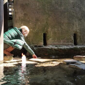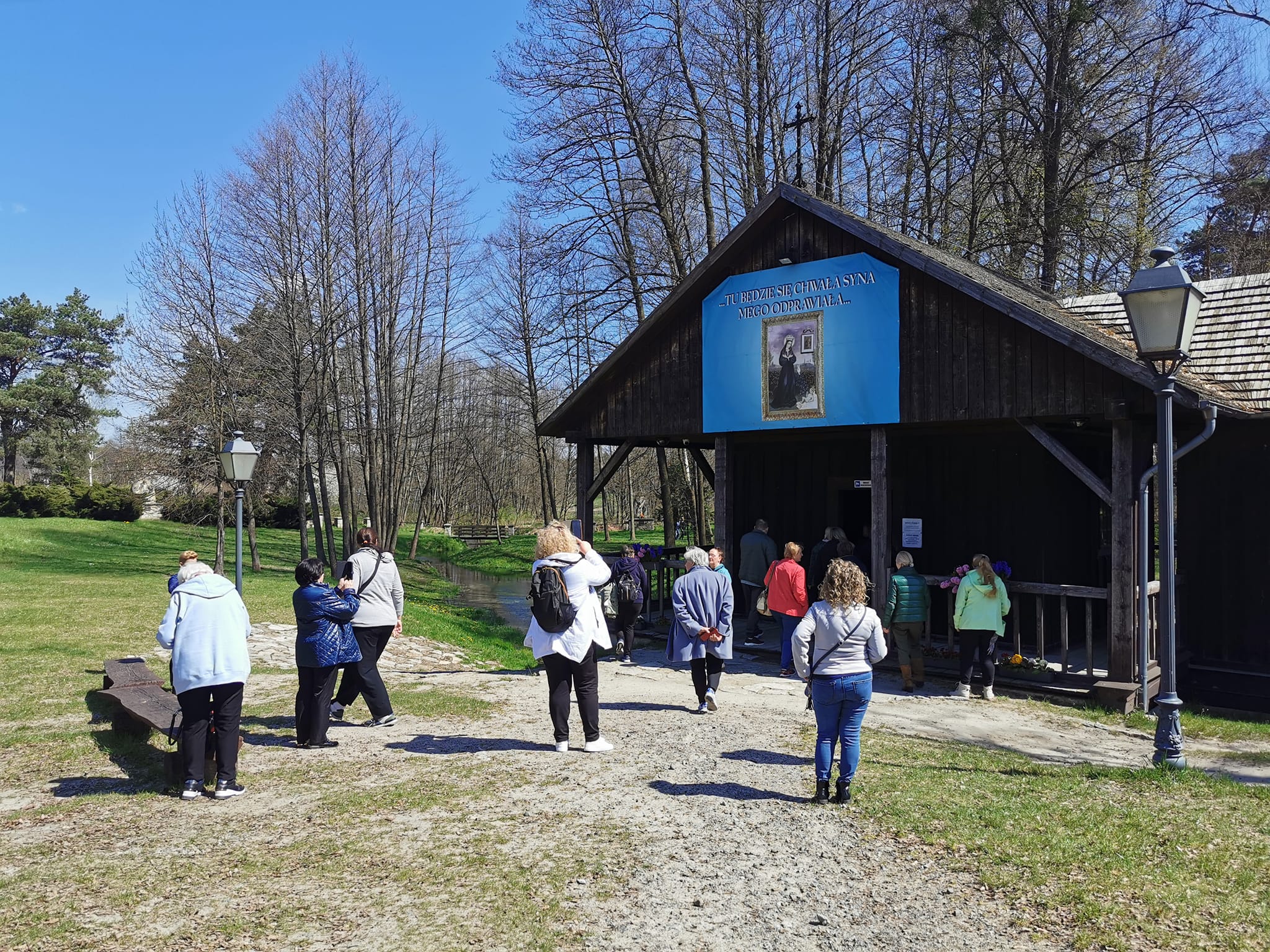 Więcej na ten temat można znaleźć w majowym wydaniu Gazety Krasnobrodzkiej z 2006 r. Również w publikacji Mieczysława Kościńskiego „Przydrożne pomniki wiary” znajdziemy krótką notatkę na temat Figury i jej fundatora. Wracając w stronę Podklasztoru, wstąpiliśmy do Kaplicy „Na wodzie”. Nasi goście byli niezwykle zauroczeni pięknem i spokojem tego zakątka. Nie omieszkali zaczerpnąć z krystalicznych źródeł pod Kaplicą.