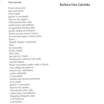 Bardzo serdecznie dziękujemy wszystkim z udział w naszym konkursie. Cieszymy się, że mogliśmy uszczknąć kawałek Waszego poetyckiego świata. Na koniec informujemy, że podsumowanie konkursu i wręczenie nagród odbędzie się w naszej bibliotece 7 maja b.r. o godz. 16.00. Serdecznie zapraszamy.